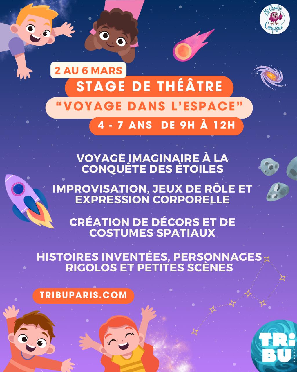 Pour les 4-7 ans, nous sommes ravies d’être les partenaires de @tribu_paris. Dans ce super café poussette, notre comédienne/animatrice @heloisecaretto accueille vos enfants tous les MERCREDIS de 17h à 18h pour un atelier d’éveil au théâtre : éveil corporel, jeux, improvisation théâtre, travail sur l’espace, la confiance.